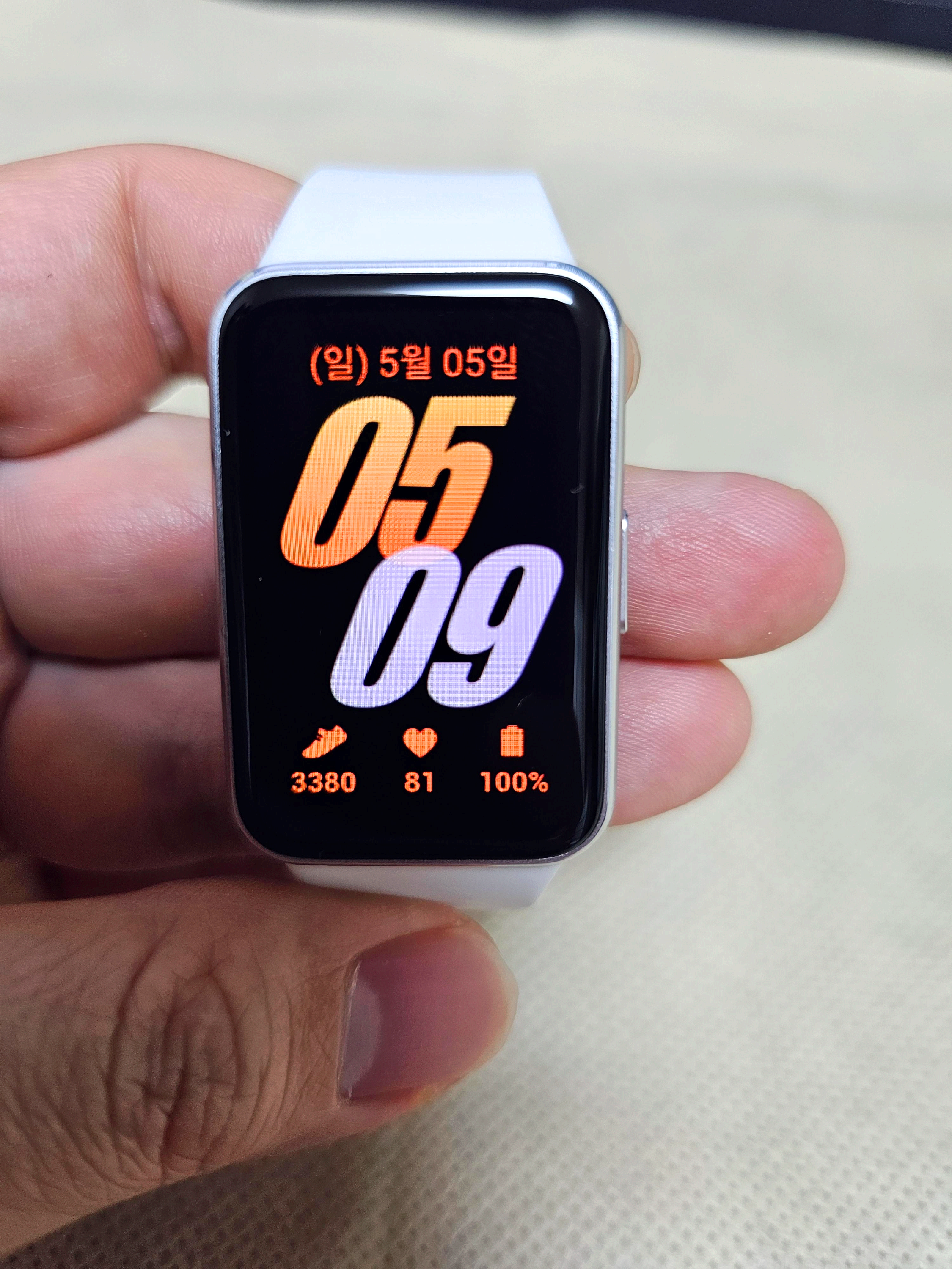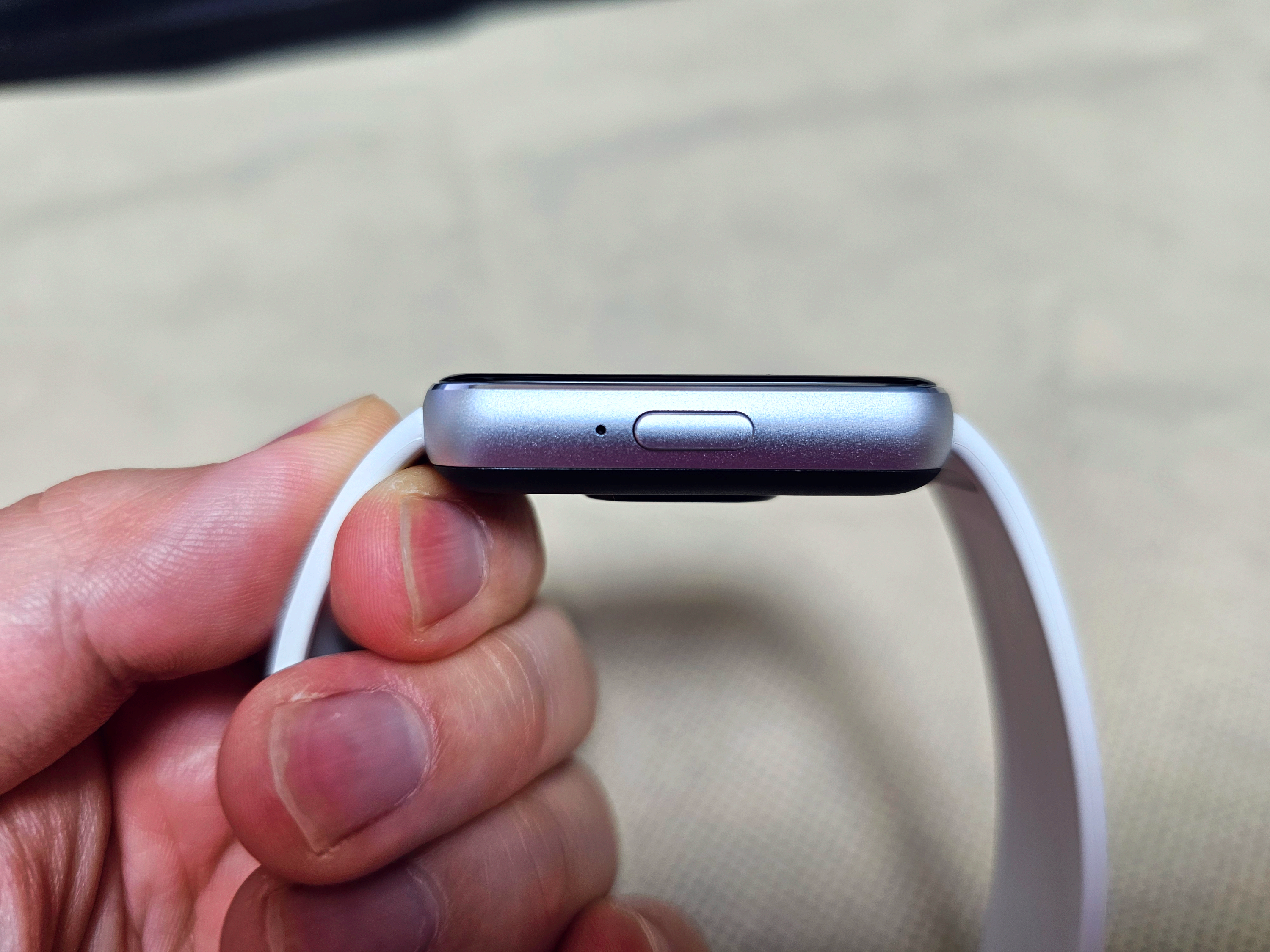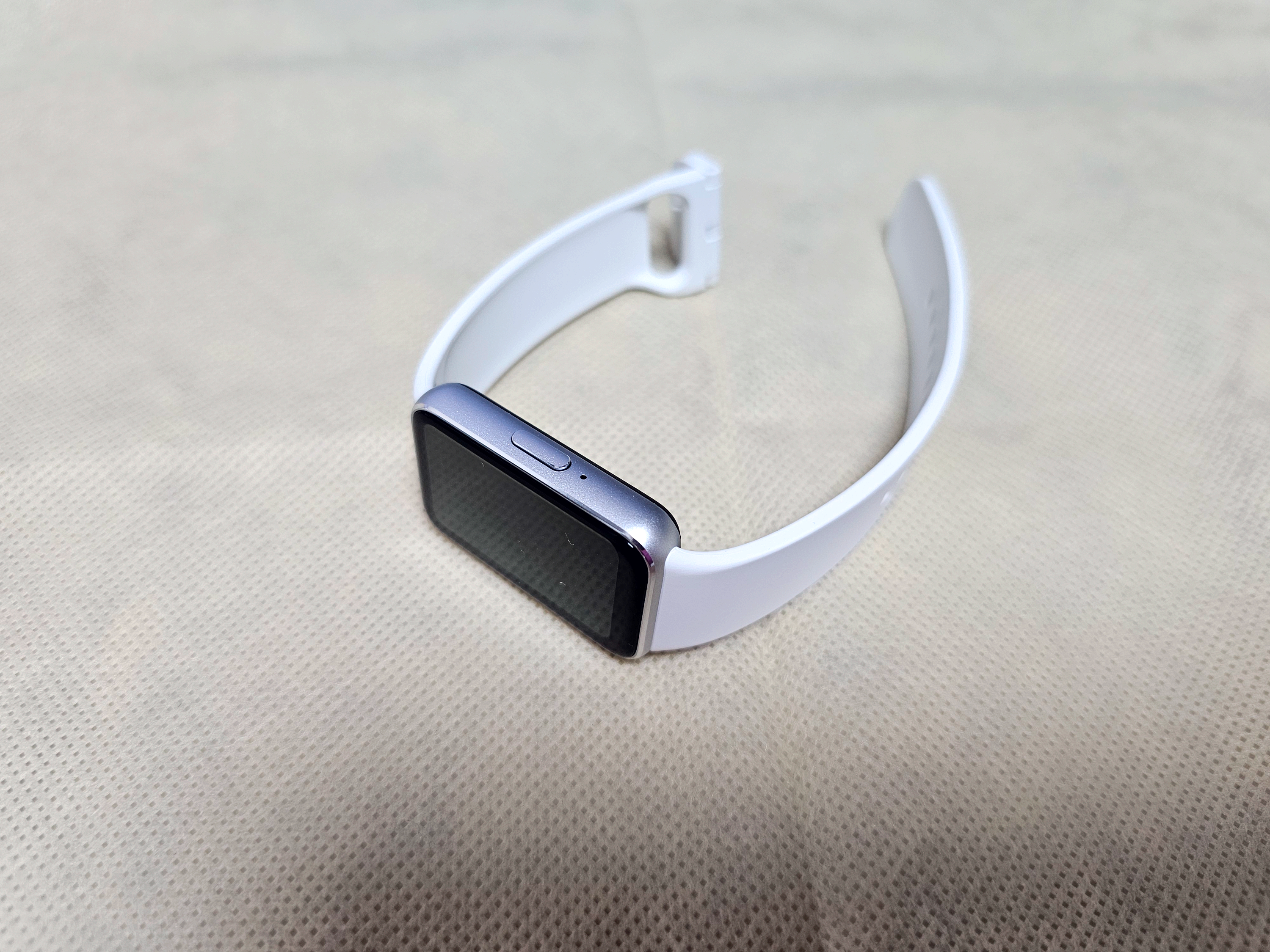 무엇보다 마음에 드는 것은 디자인입니다. 굉장히 깔끔한 디자인으로 군더더기없는 디자인이 특징적입니다. 미니 애플워치같은 느낌으로 크기가 부담스럽지 않아서 좋습니다. 우측에 하나의 버튼이 있고 세가지 컬러로 출시가 됐습니다. 저는 깔끔하게 실버로 구매를 했는데 실물이 진짜 예쁩니다.
